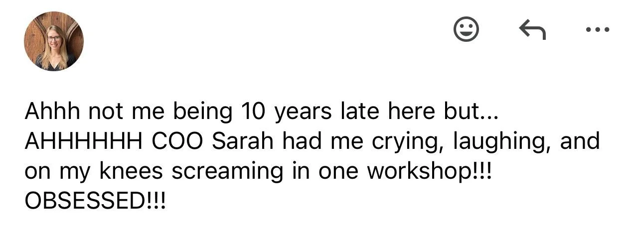 Embodiment isn’t just a practice for Sarah; it is her most powerful and trusted tool in this work. She hasn’t just studied the craft—she has deeply refined and optimized it.